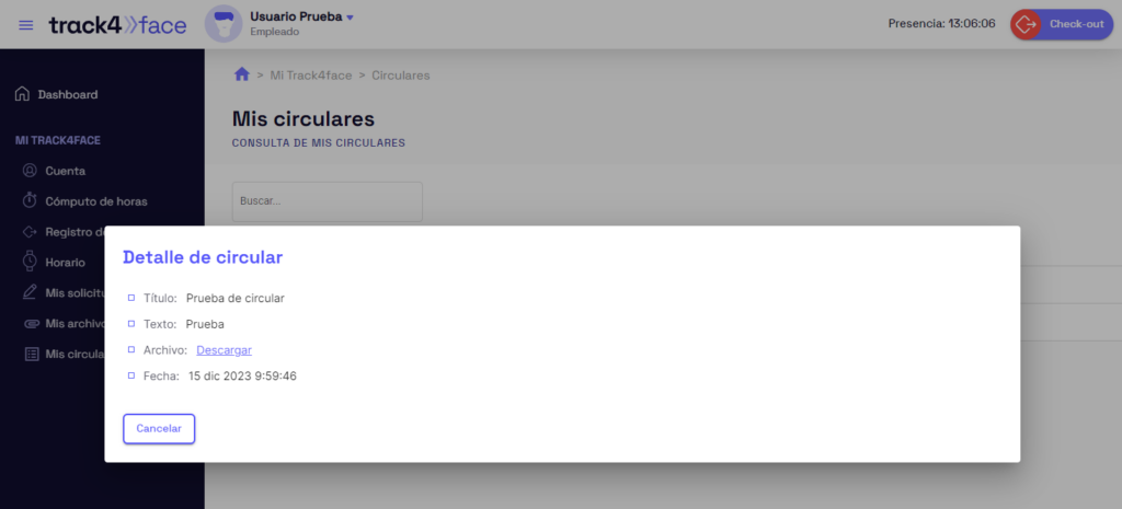 Mis archivos y circulares son secciones de Track4face donde guardar archivos personales y comunicaciones por parte de tu empresa, de una forma sencilla y rápida.