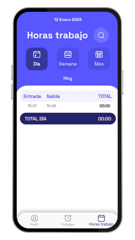 Para ello te mostraremos un listado del registro de acciones de entradas y salidas, así como el tiempo total acumulado en el intervalo seleccionado.